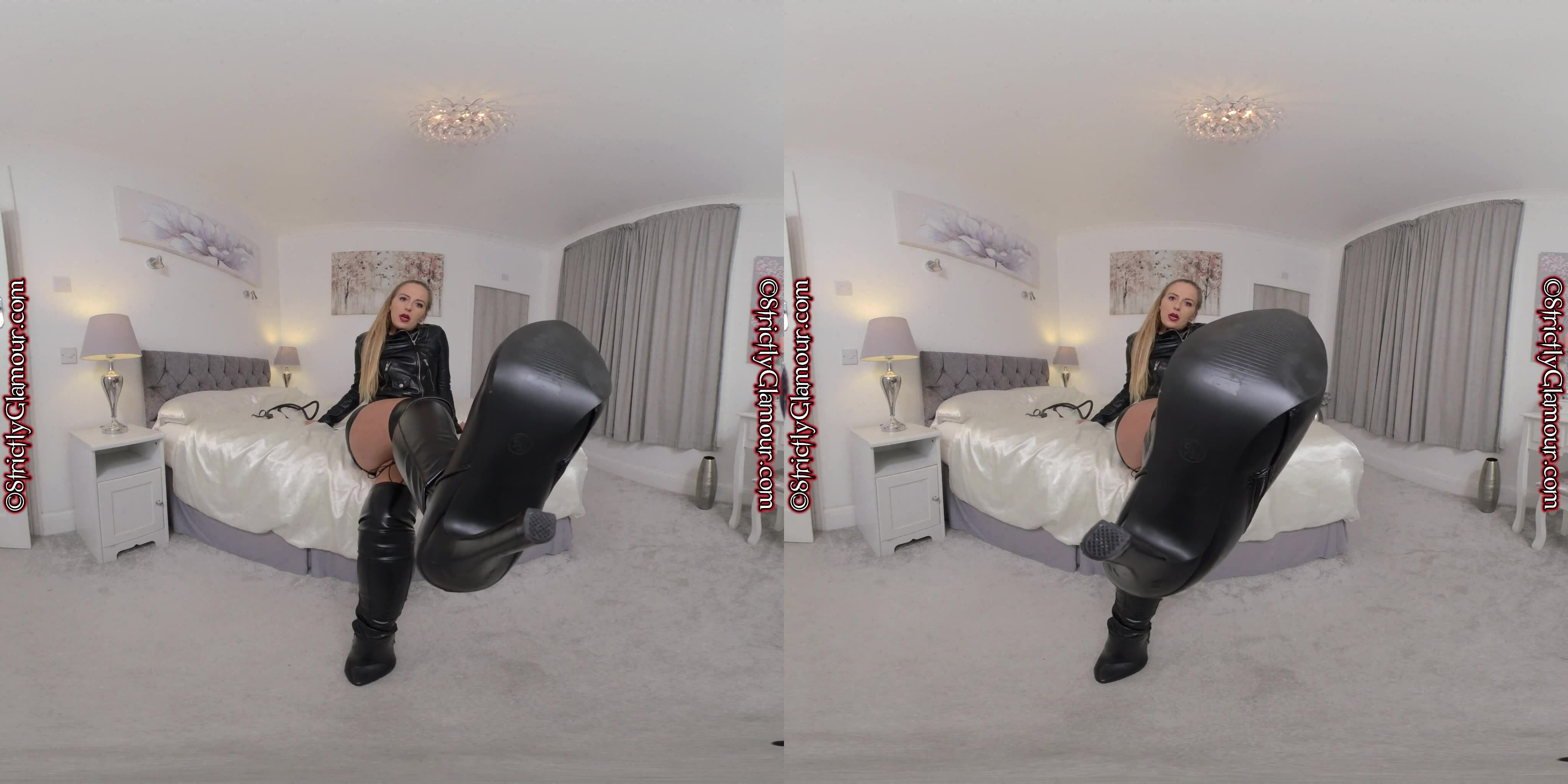 How do you fancy being put in your place by Mistress Monika dressed in skin-tight leather? Watch this VR video in amazing 3D using a VR headset to experience the full ‘like real’ encounter with this playfully cruel dominatrix.