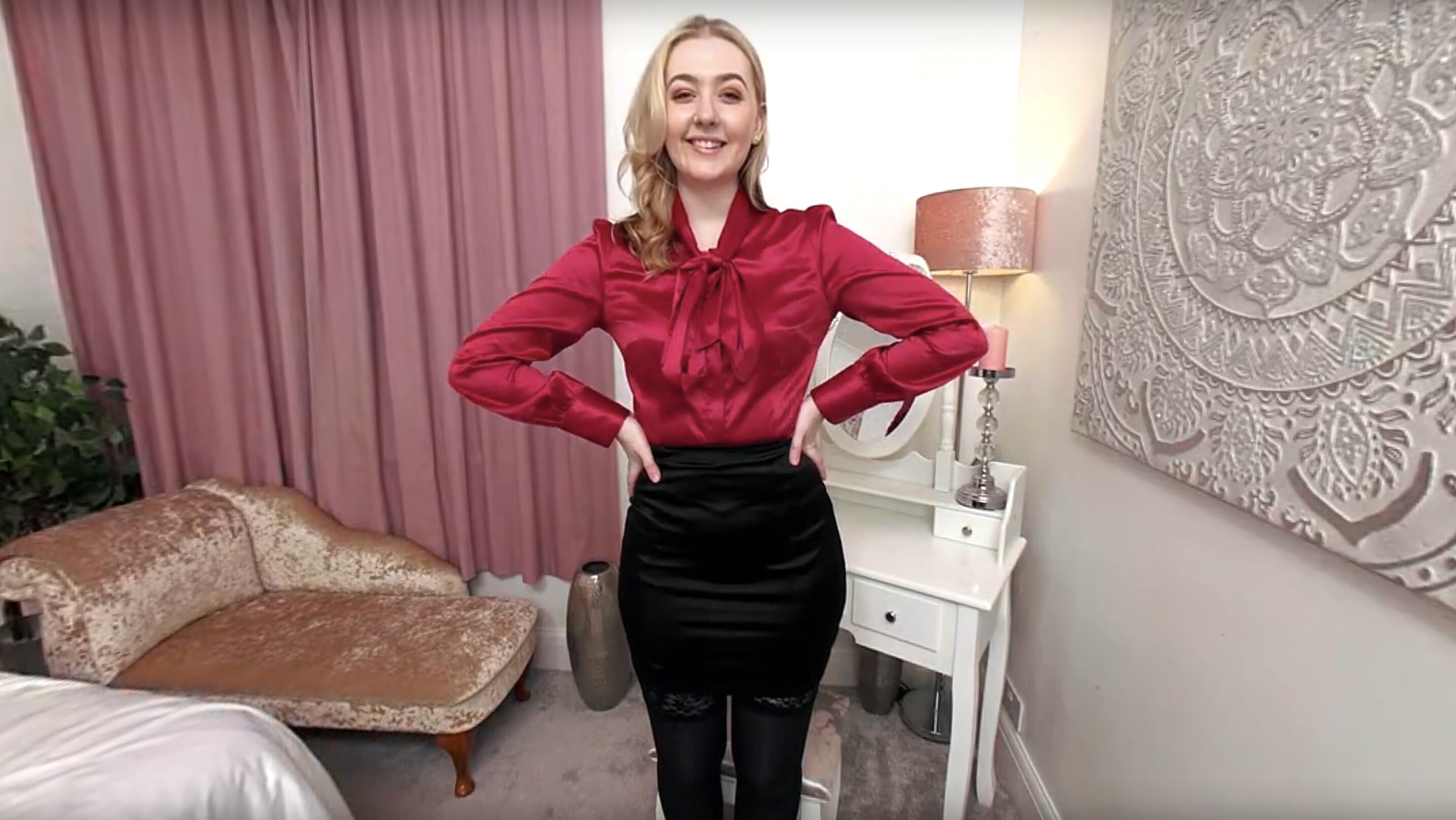 Lauren Louise Red Silk/Satin Bloused Secretary With Black Stockings Negotiates Pay Rise - 8K VR
