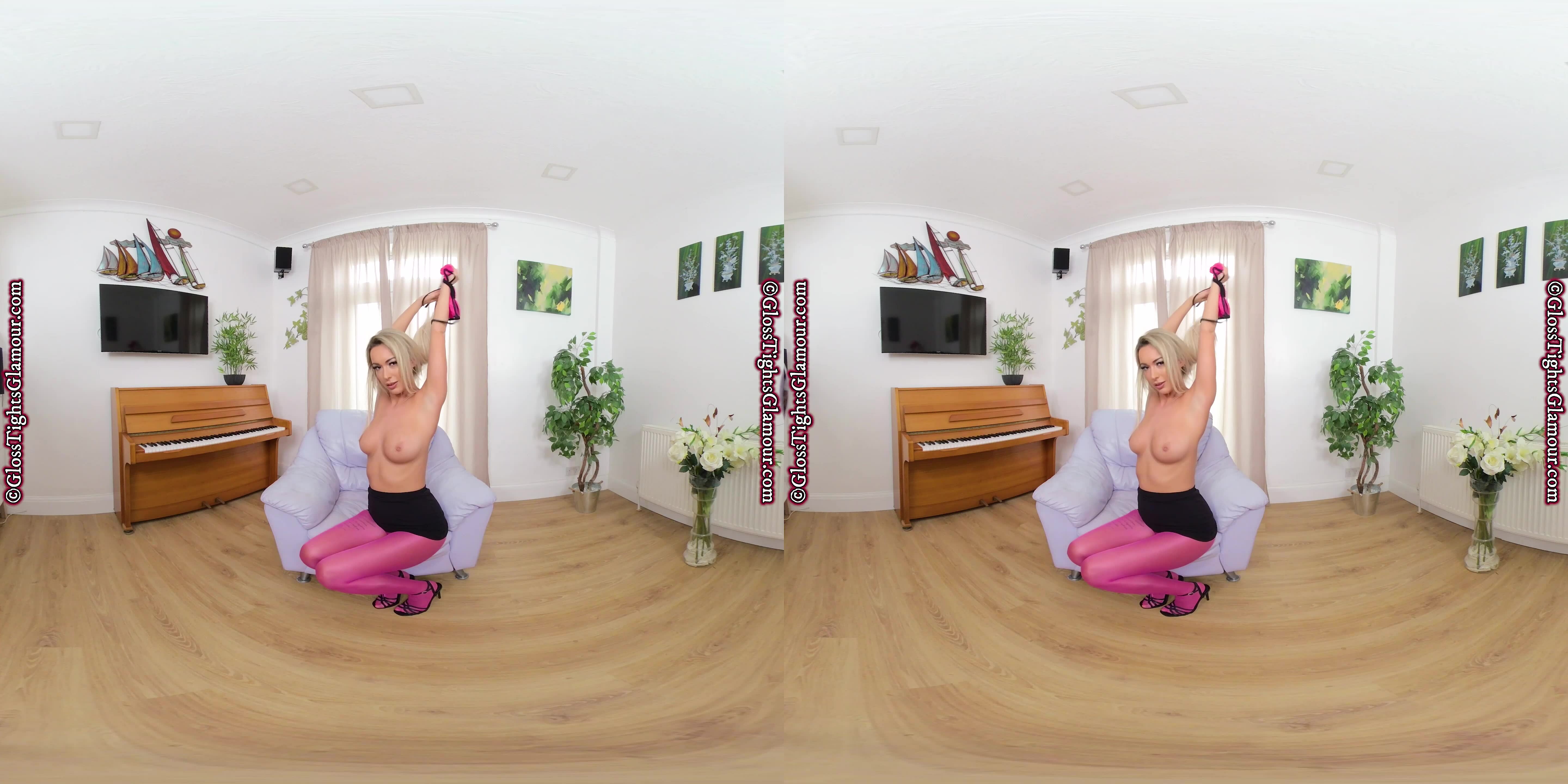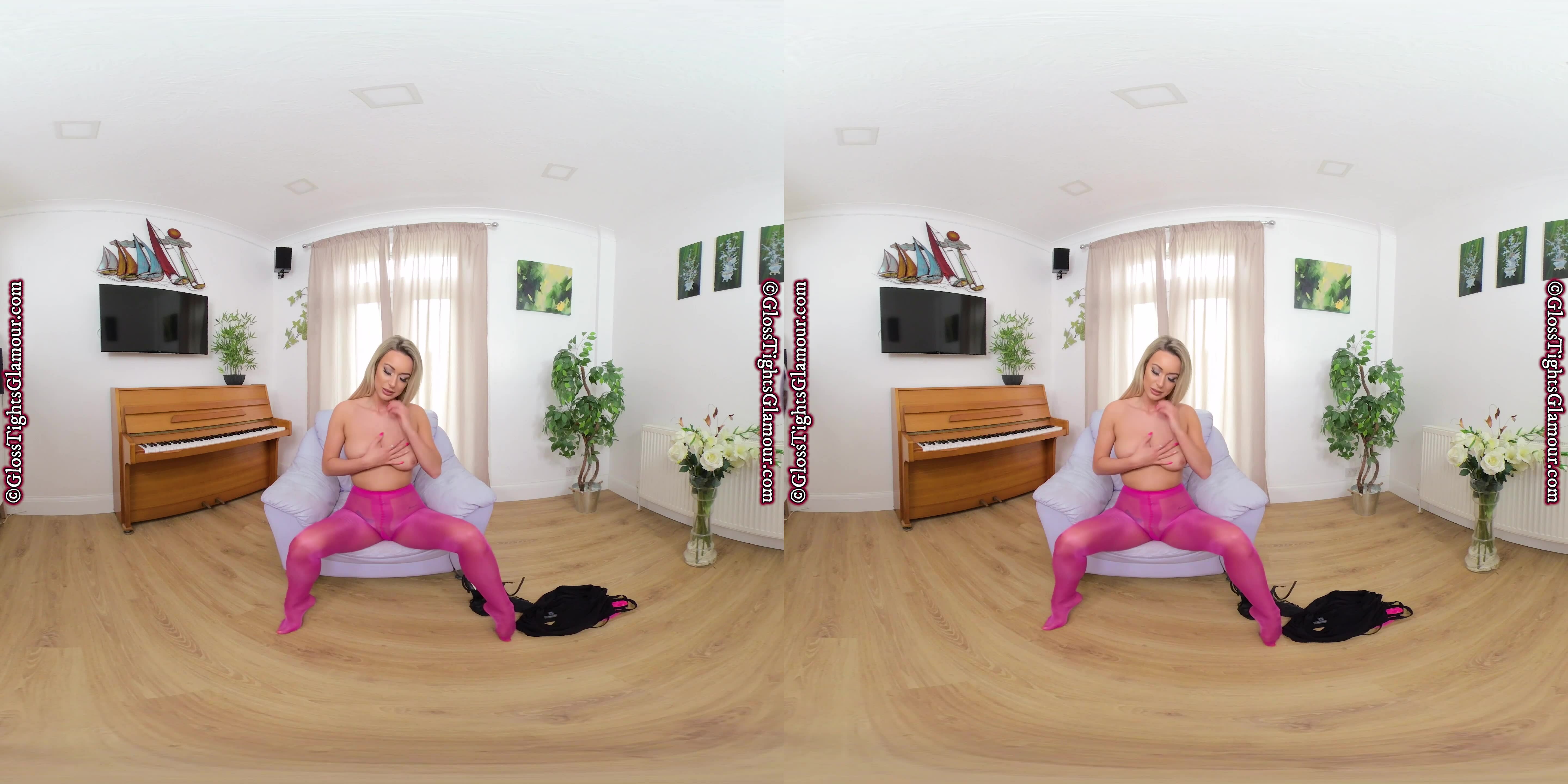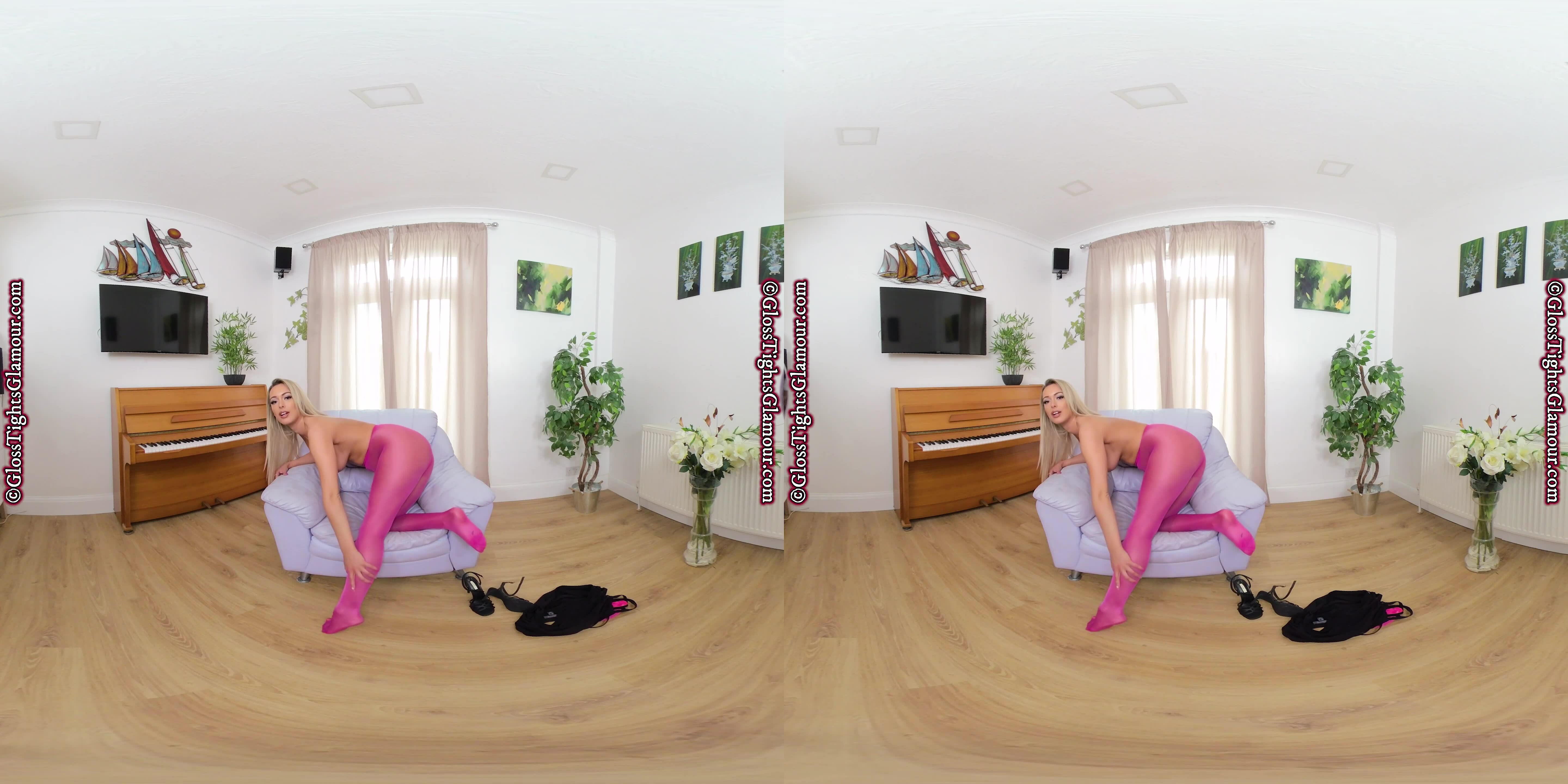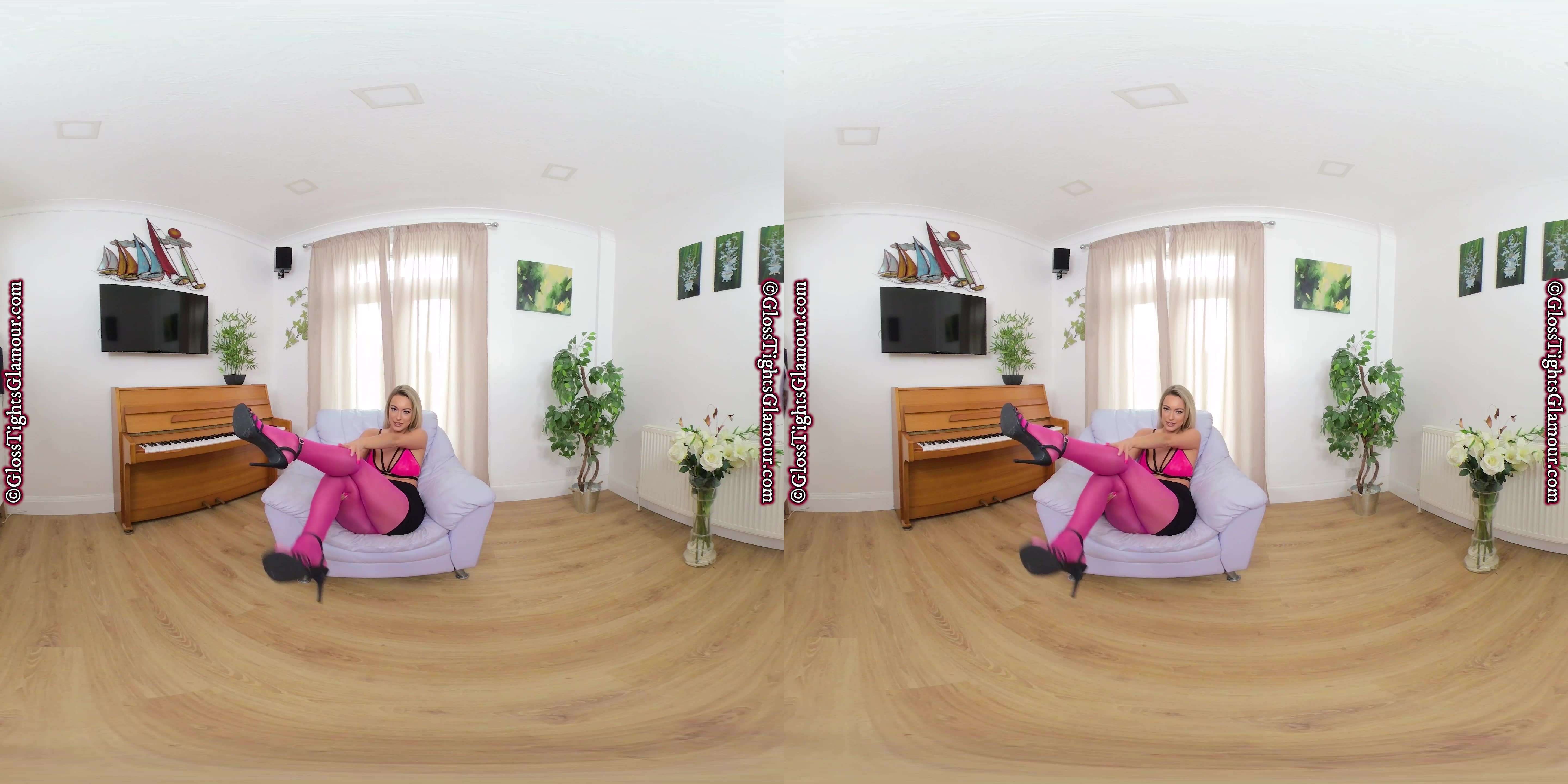 The title says it all, and Lauren Louise is the perfect natural beauty to show off the gloriously glossy pink/fuchsia legwear featured in this epic VR video as you are about to discover – so sit back and relax and ENJOY what you see!