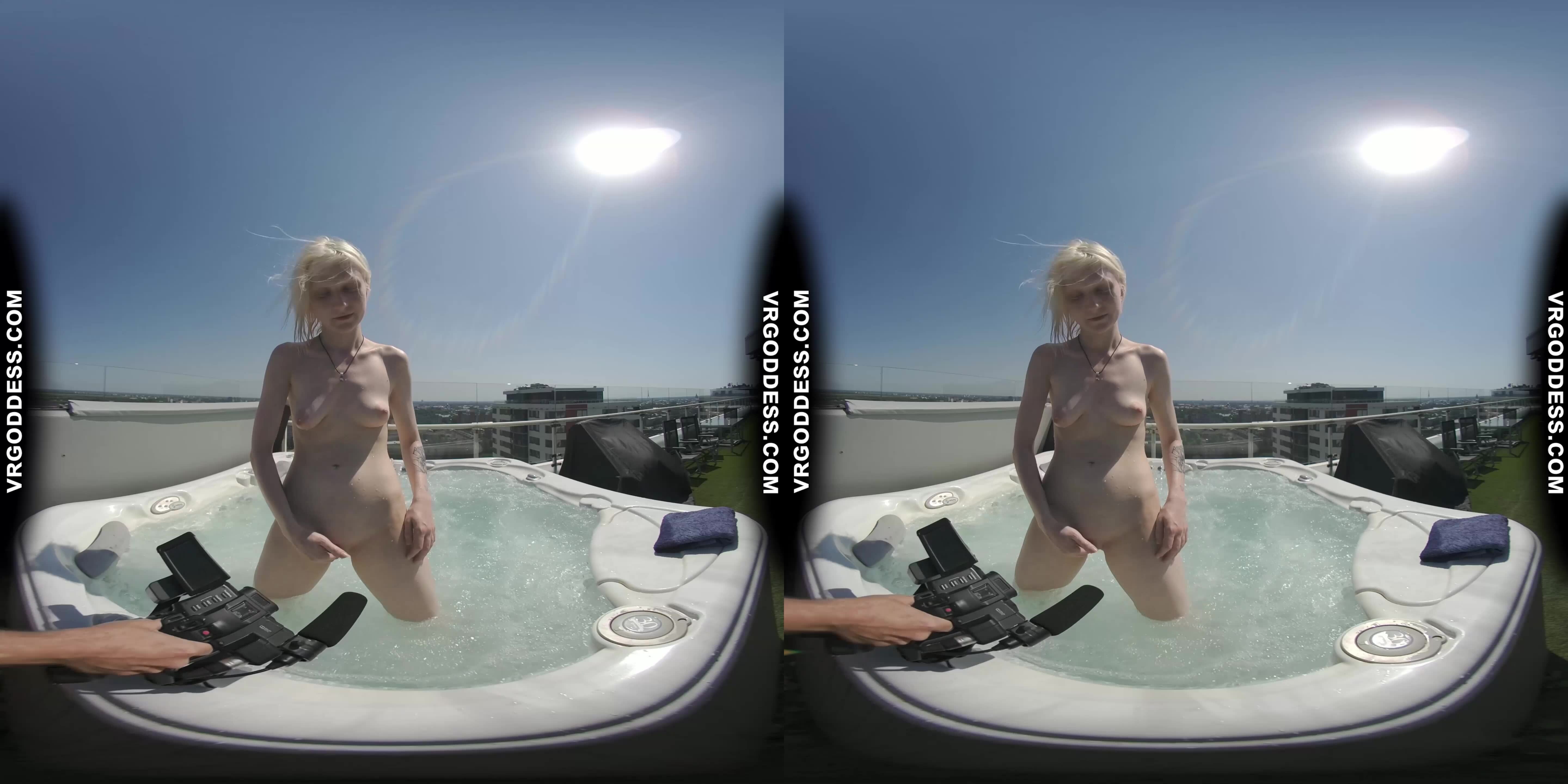 In this exclusive VR video, Penthouse rooftop jacuzzi hot Ingrida is the epitome of seduction. She's a petite bombshell with natural tits, shaved pussy, and a playful demeanor. As she smokes and masturbates in the sun, her intimate moments are captured in stunning 4K resolution. The 180° binaural sound and 6K visuals create an immersive experience that puts you right there with her.