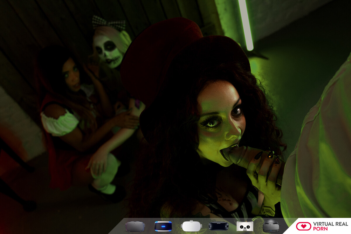 Dive into Halloween VR porn with Chloe Cherry, Demi Sutra, Lauren Phillips, and Whitney Wright. Experience a thrilling orgy in stunning 6K VR, packed with suspense and erotic horror. Feel the intense excitement and dark fantasy now!