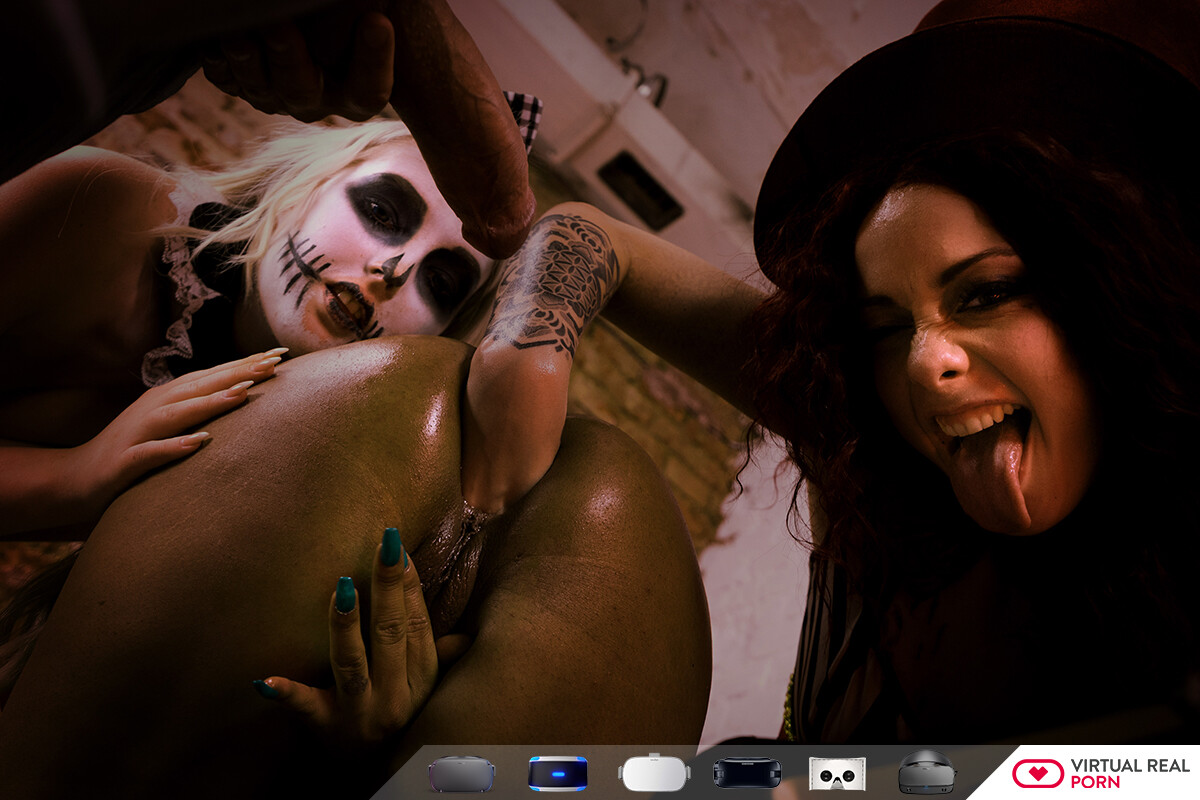 Dive into Halloween VR with Katrin Tequila, Lola Taylor, and Luna Corazón in a wild orgy. Experience thrilling passion in stunning 4K VR. Feel the intense, erotic adventure!
