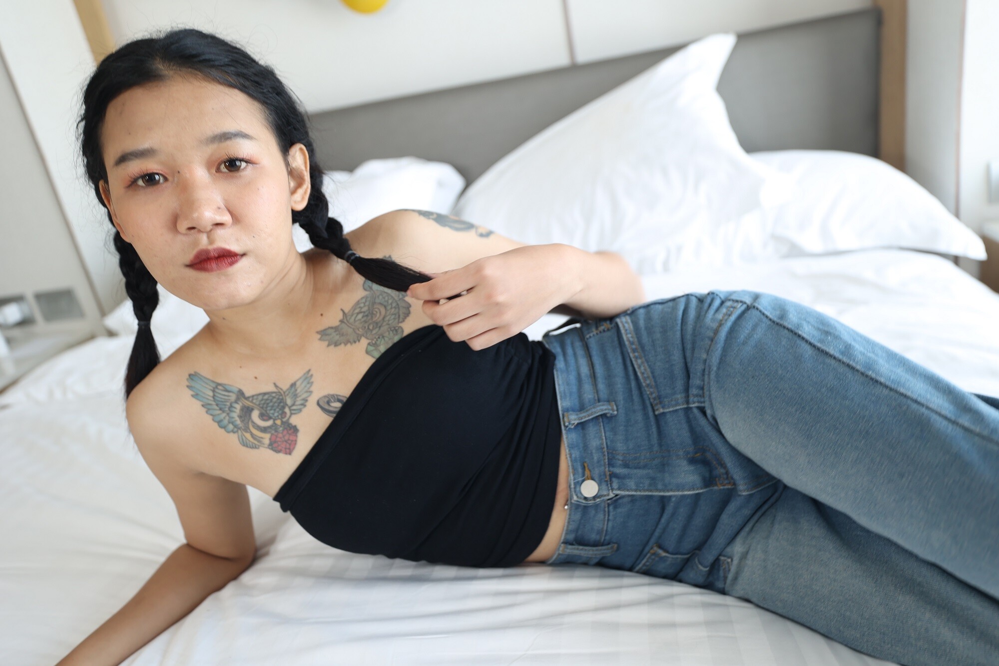 Lulu Chu gasps as your massive cock stretches her tiny Asian pussy in this 8K VR hardcore epic, featuring deep blowjob, fingering, cowgirl, reverse cowgirl, doggystyle, and missionary intensity. Experience her petite tattooed fire and cum-swallowing finale for mind-blowing, pulse-racing immersion.