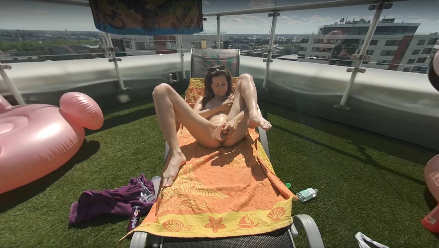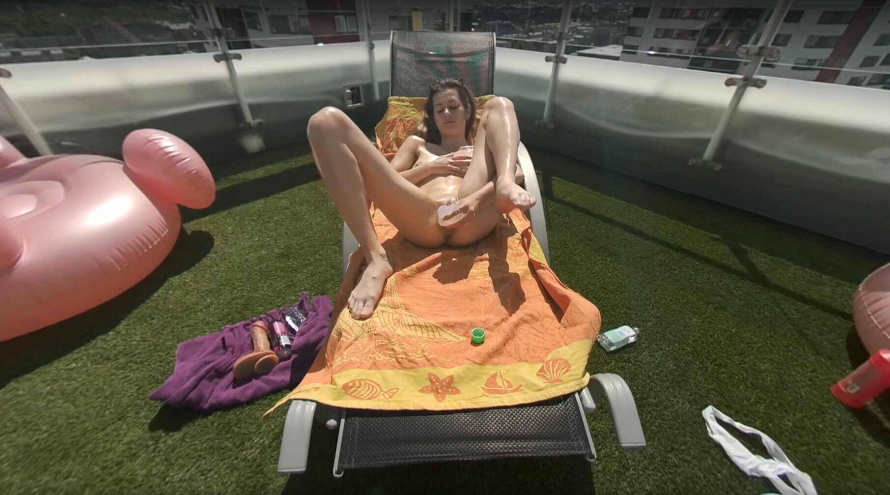 Man, I gotta tell ya, watching Skinny Josie in this rooftop scene is somethin’ else. Right from the start, Josie grabs your attention with that petite frame glistenin’ under the sun. She’s up there, all alone, with just a dildo and a wicked smile, and honestly, it’s like you’re right there with her in immersive VR.